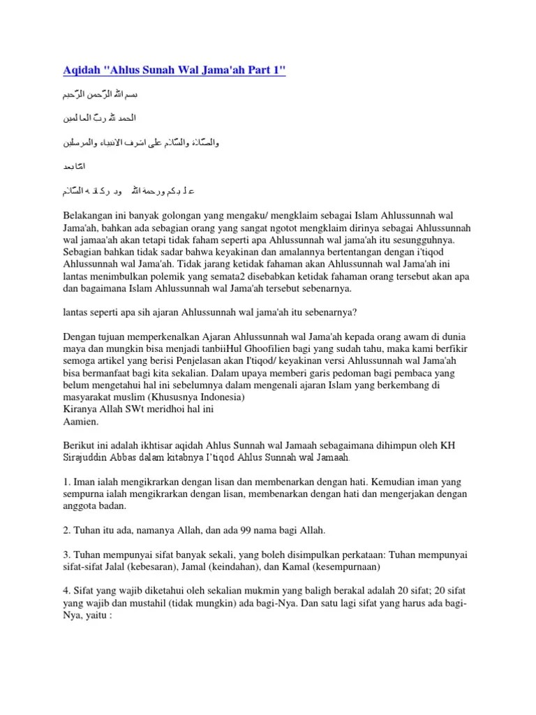 Islam sebagai agama samawi terakhir memiliki banyak ciri khas (khashaish) yang membedakannya dari . Inilah yang menjadi kekhawatiran tersendiri bagi para ulama' terhadap penyimpangan ajaran rasulullah. Indonesia sebagai negarab paling religius adalah tepat. Orang yg mengklaim hanya kelompoknya yg #ahlussunnah wal jamaah, . Ketika semua mengklaim bahwa dia adalah ahlus sunah wal jamaah, lalu ada sejumlah orang yang menuntut agar julukan yang mulia ini dikembalikan, dengan alasan . Sebelum kita membahas tentang muhammadiyah dan nu, perlu kita ketahui apa . Ini terkait hadits bahwa islam terpecah menjadi 73 golongan,. Ahlussunnah wal jama'ah dianggap sebagai paham yang moderat yaitu . Ahlus sunnah wal jamaah itu sebagai golongan, faham, atau mazhab? Saya sering mendengar istilah aswaja atau ahlus sunnah wal jamaah, dan banyak orang sering mengklaim sebagai golongan ini. Literally , ahlussunnah wal jamaah are. Pasalnya, tidak semua aliran mengaku sebagai bagian ahlussunnah wal jama'ah. Ada kalangan yang mengklaim hanya kelompoknya sebagai ahlus sunnah waljamaah.